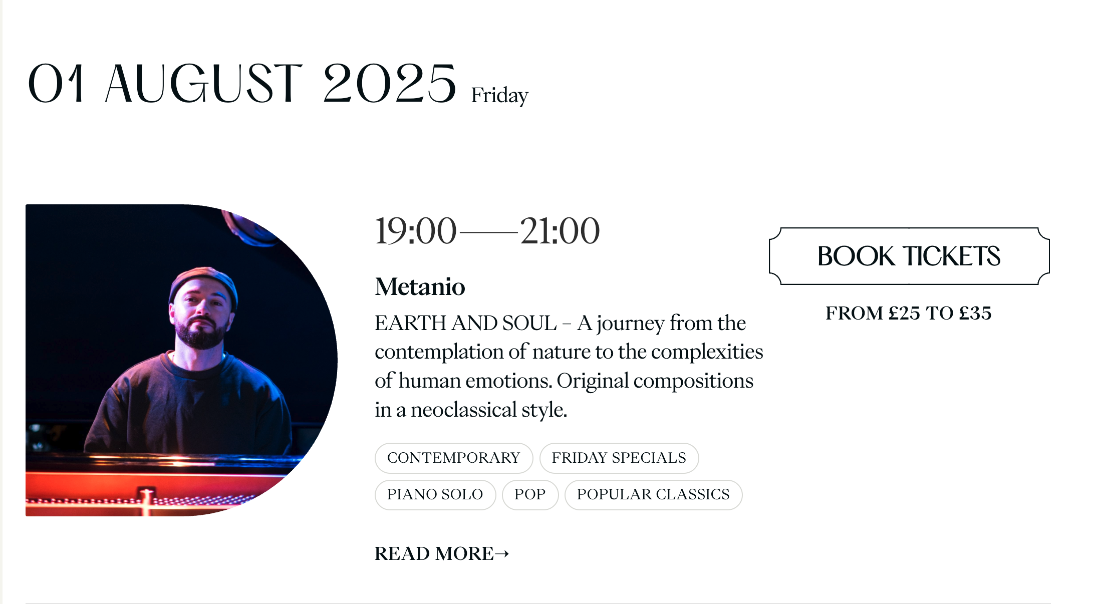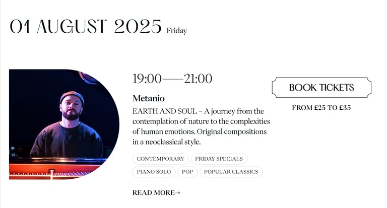 The performance explored the delicate balance between classical tradition and contemporary expression that defines my work as Metanio. Audience members experienced the emotional resonance that has become my signature—where the warmth of traditional piano meets modern sensibilities, all delivered with the intimate, warm sound I've meticulously developed through years of production refinement.